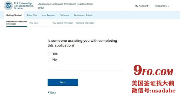 自动进入I-90表格的在线填写