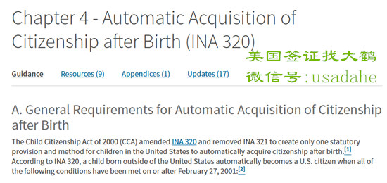 根据《移民与国籍法》第320条(INA 320),出生在美国以外的孩子,在满足条件时,会自动成为美国公民,不需要单独申请归化。